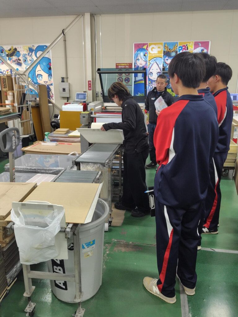 1月15日に三好高校1年生の生徒さん6名をインターンとして受け入れました。 インク練りやアクリルで名札を作ってもらうなど、当社の仕事を体験していただきました。 印刷会社を知ってもらうだけでなく、「働く」ということを考えていただく良い機会にもなったようです。