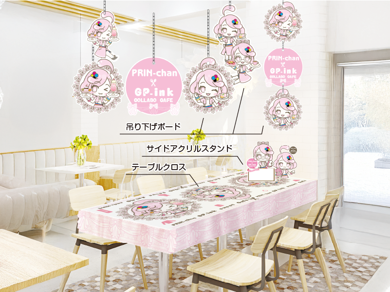テーブルクロス・吊り下げボード・マドラー・アクリルスタンドなど、